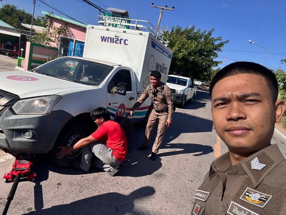สภ.ราษฎร์เจริญ วันนี้ 8 ธ.ค.67 เวลา09.00น.ร.20 พร้อมสายตรวจรถยนต์ ออกว.4ในเขตรับผิดชอบพบรถประชาชนจอดเสีย(ยางรถยนต์รั่ว )บริเวณหน้าอิงฟ้ารีสอร์ตจึงทำการเข้าช่วยเหลือเปลี่ยนยางเสร็จเดินทางต่อไปเรียบร้อย