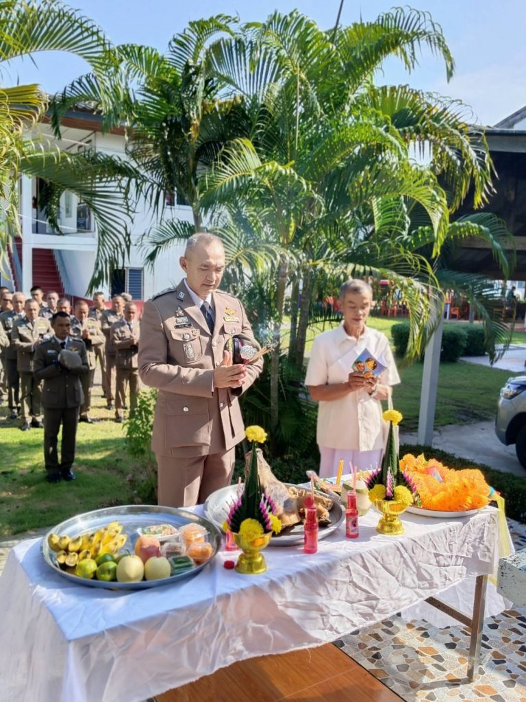 โดยร่วมกันทำพิธีสักการะพระพุทธรูปประจำสถานีตำรวจและศาลพระภูมิเจ้าที่สิ่งศักดิ์สิทธิ์ประจำสถานีตำรวจภูธรราษฎร์เจริญเสร็จแล้วรวมแถวเคารพธงชาติ กล่าวคำสัตย์ปฏิญาณ อุดมคติตำรวจ บทปลงใจ และรับฟังการอ่านสาร ผบ.ตร. จากพ.ต.อ.จักราวุธ จงศิริ ผกก.สภ.ราษฎร์เจริญ เสร็จพิธี จากนั้นร่วมประชุม คณะกรรมการ กต.ตร.สภ.ราษฎร์เจริญ ครั้งที่ ๑ ประจำปีงบประมาณ ๒๕๖๗ และพิธืมอบใบประกาศเกียรติบัตรแก่ช้าราชการตำรวจที่ปฏิบัติงานดีเด่นทั้ง ๕ ด้าน “ด้แก่ ด้านงานอำนวยการ ด้านการป้องกันปราบปราม ด้านการอำนวยความยุติธรรม ด้านการสืบสวนและด้านการจราจร โดย นายบวร พิมพ์แพน ประธาน กต.ตร.เป็นผู้มอบใบประกาศเกียรติบัตร เสร็จแล้วร่วมพิธีทำบุญตักบาตรถวายภัตตาหารเพลแด่พระภิกษุสงฆ์ ณ ศาลาเอนกประสงค์ สภ.ราษฎร์เจริญเพื่ออุทิศส่วนกุลแก่ข้าราชการตำรวจที่เสียชีวิตจากการปฏิบัติหน้าที่