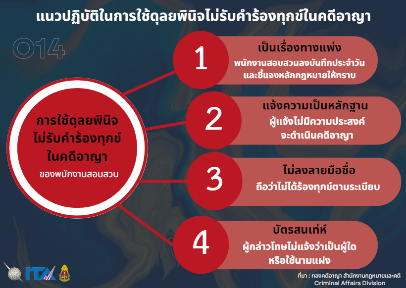 - แนวปฏิบัติในการใช้ดุลยพินิจไม่รับคำร้องทุกข์ในคดีอาญา